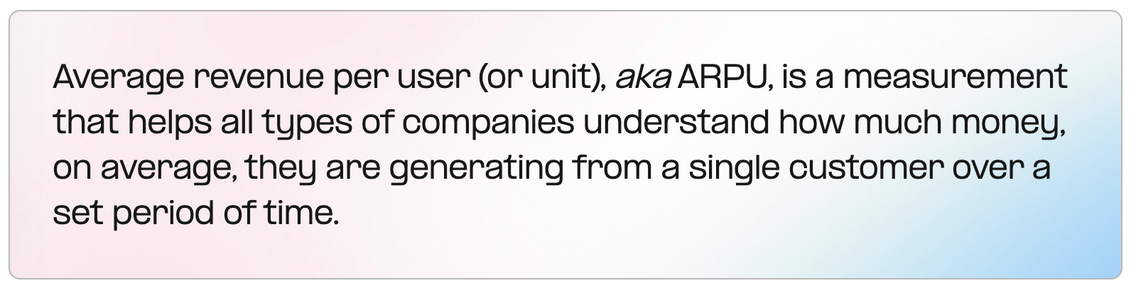To summarize, ARPU is worth tracking, but it’s increasingly overused and overtrusted. It’s not a one-size-fits-all decision metric, and it can point you in the wrong direction if you don’t define it carefully.
