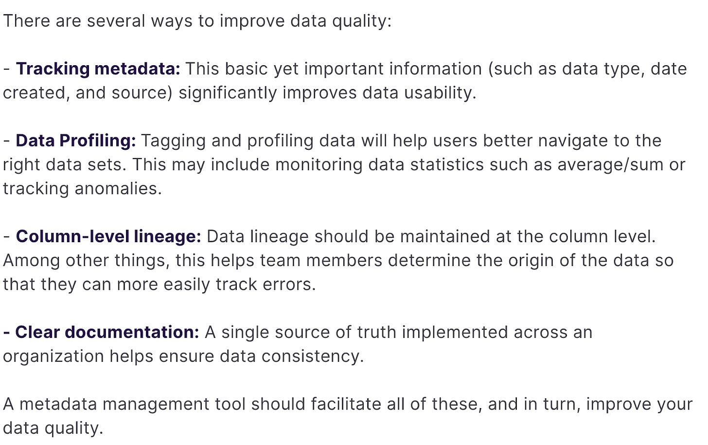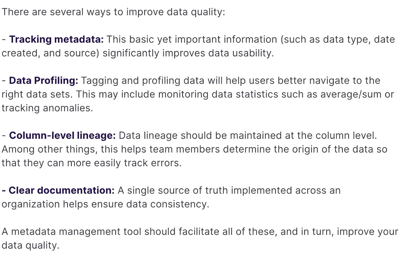 This is the best measurement of data quality the company, which is solving data governance for $900/month, came up with through their 74 blog articles and videos. I found it hard to believe that a company of that scale and funding couldn’t cover the basics of data governance. So, I took time to listen to their videos, but most of them weren’t helpful.