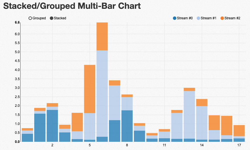 Composition and Flow visuals can be static and dynamic. Static charts are waterfall graphs, pie charts, and stacked column charts. Dynamic depend on how many relative differences you aim to display for how many periods of time. You would use this type of visualization to see the relative value or absolute difference - either percentage of total or value of total.