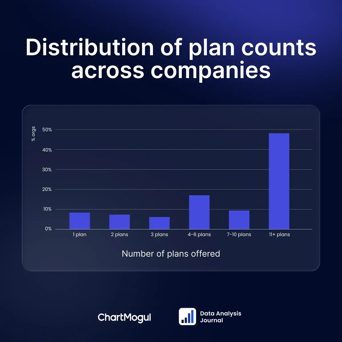 💡Overall, 54% of companies offer 10 or fewer plans, and 46% offer 11 or more plans.