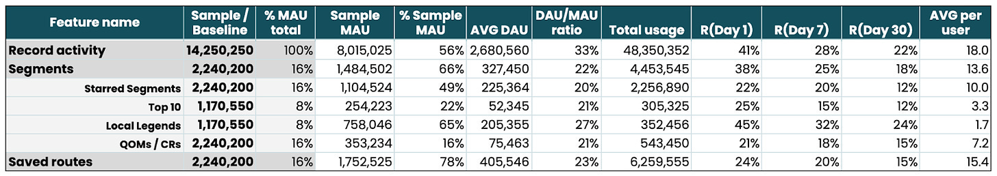 Here is how I do it, along with my SQL solution for getting top-used features - Ranking The Top Used Product Features.