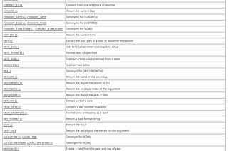 A quick lookup one-pager for common DATE functions in SQL